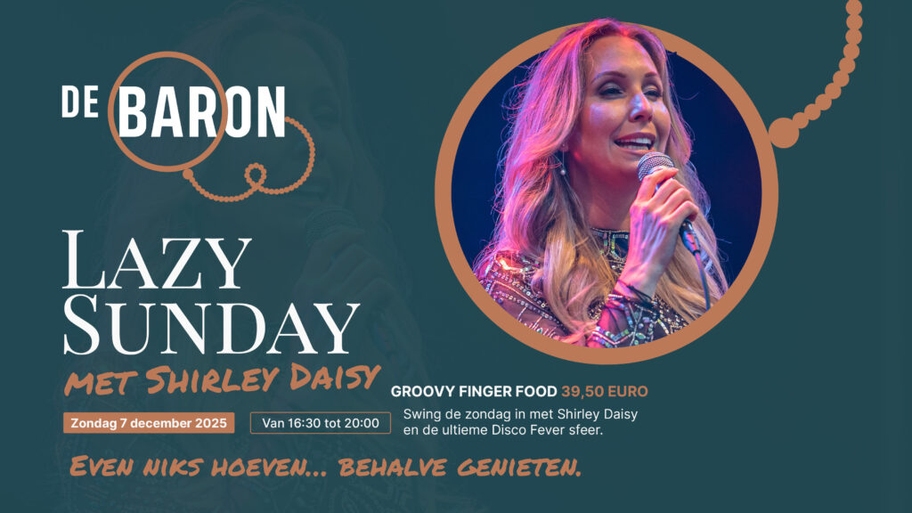 De Baron verandert op zondag 7 december in een gezellige diner & dans avond tijdens Lazy Sunday: Finger food & Disco Fever!