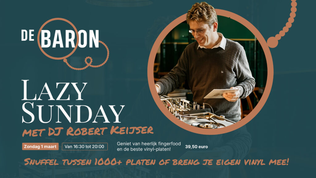 Zet zondag 1 maart in je agenda, want De Baron verandert voor één dag in een waar vinylparadijs. Tijdens de Lazy Sunday nemen we je mee op een muzikale reis langs jouw favoriete LP’s, singles en maxi-singles.