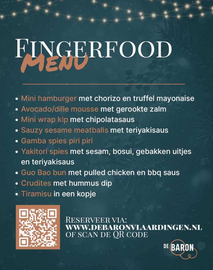 Op Kerstavond is De Baron tot 20.00 uur geopend. Kom vanaf 16:30 uur genieten van een feestelijk drankje en finger food in gezellige kerstsfeer.